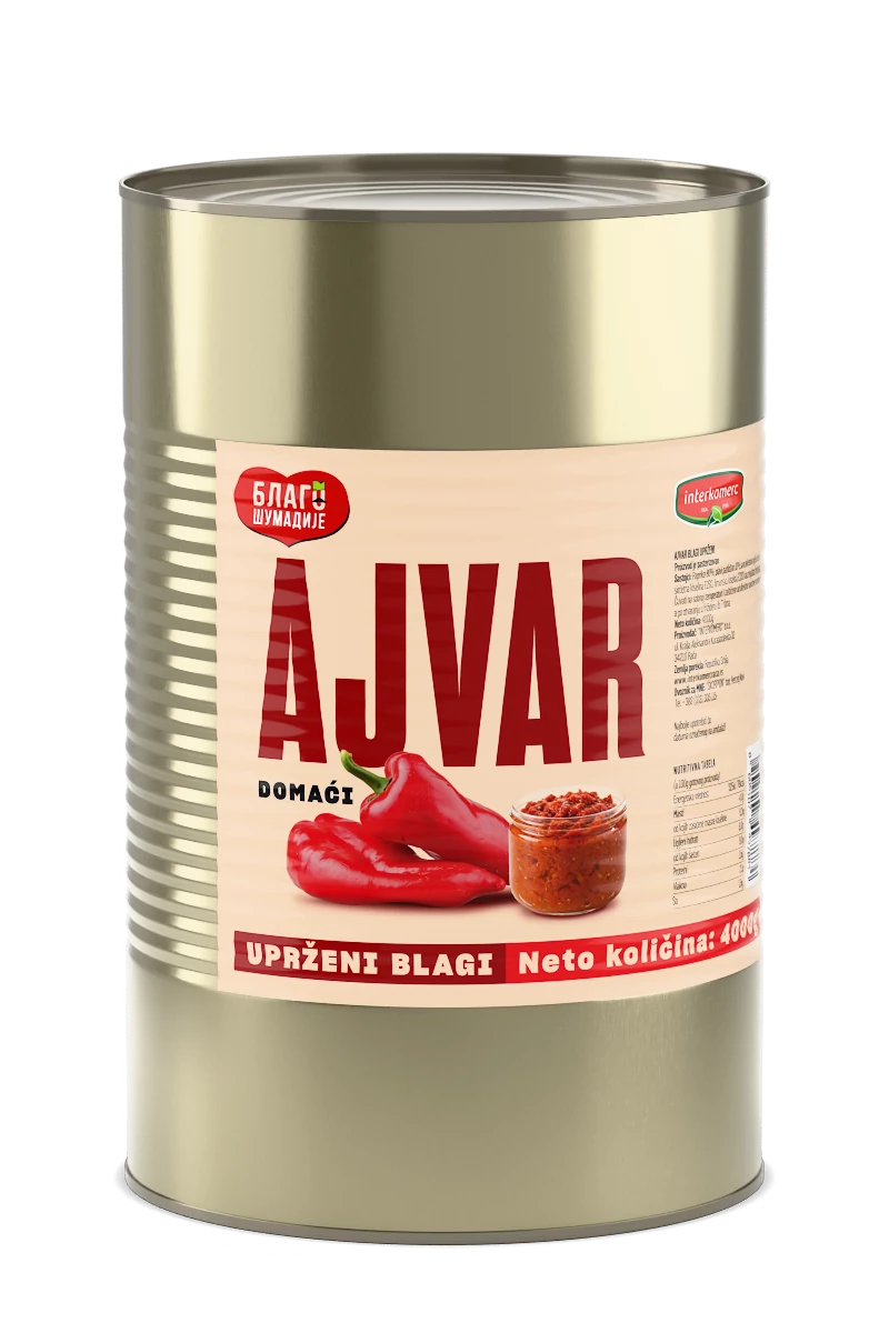 Pasterizovani blagi ajvar od domaćih paprika i plavog patlidžana, upržen, 4000 g.