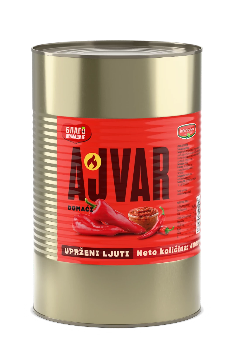 Pasterizovani ljuti ajvar od domaćih paprika i plavog patlidžana, upržen, 4000 g.
