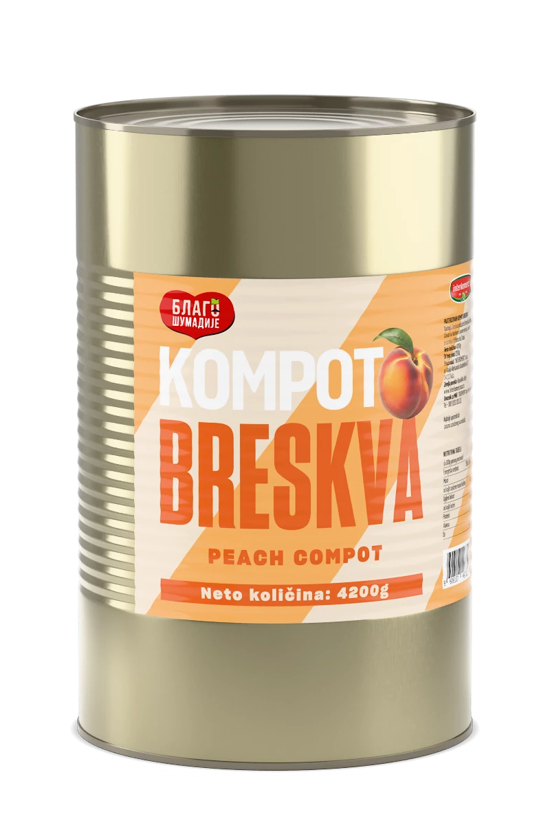 Kompot od domaće breskve, manje sladak, pasterizovan, 4200 g.