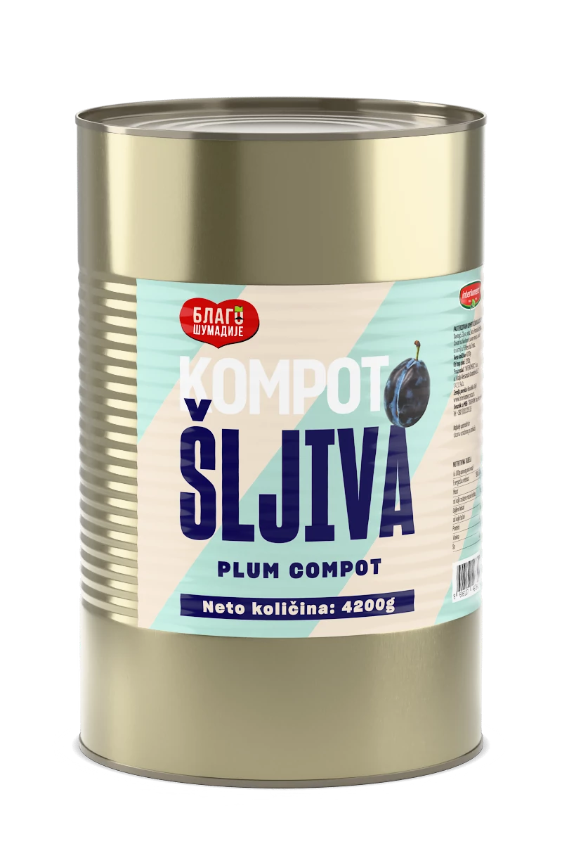 Kompot od domaće šljive sa košticom, manje sladak, pasterizovan, 4200 g.