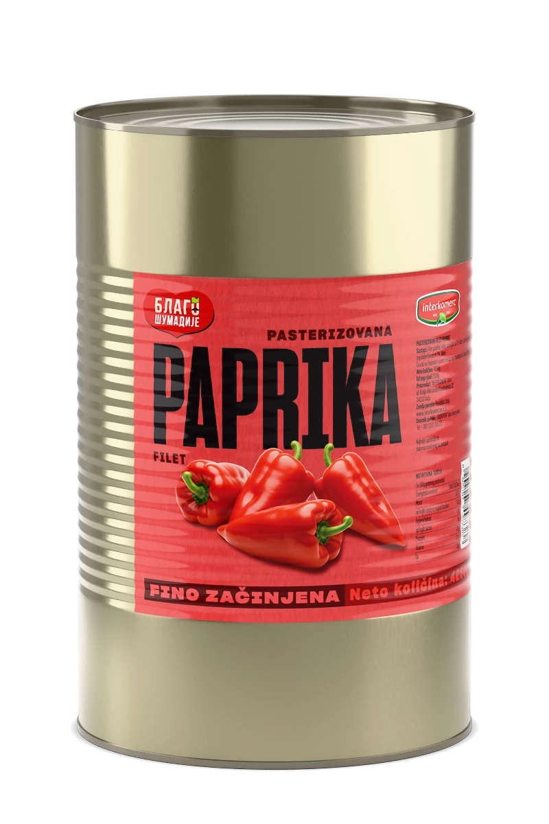 Pasterizovani fileti domaće crvene paprike, fino začinjeni, 4250 g.