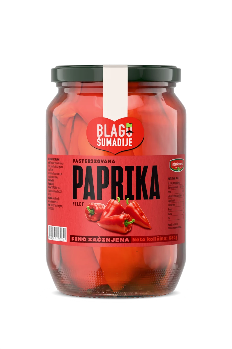 Pasterizovani fileti domaće crvene paprike, fino začinjeni, 680 g.