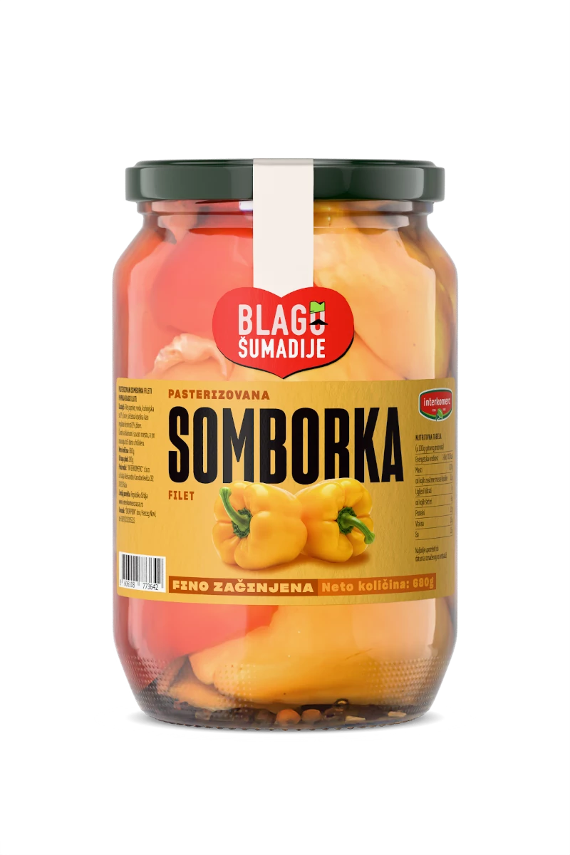 Sastojci: Fileti paprike somborke, voda, kuhinjska so 2%, šećer, sirćetna kiselina kao regulator kiselosti 2%, biber.