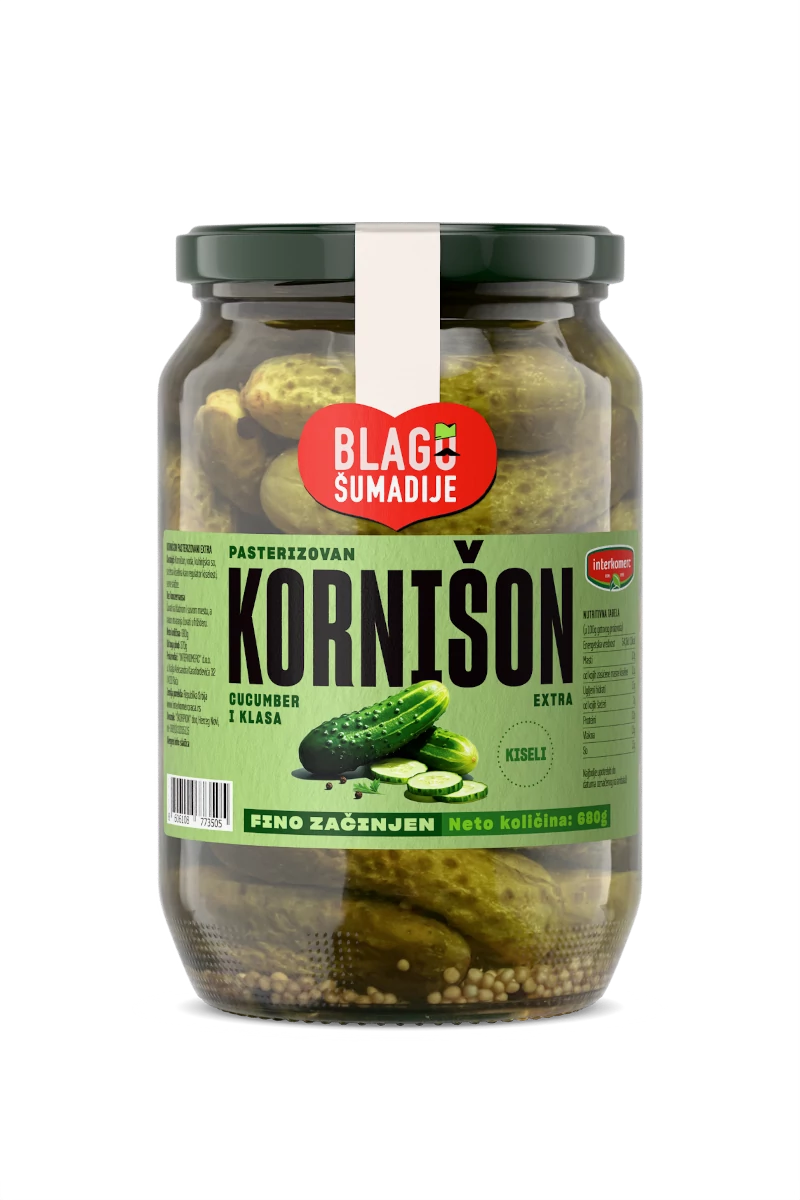 Pasterizovani kornišoni extra, domaći, kiseli, fino začinjeni 4200 g.