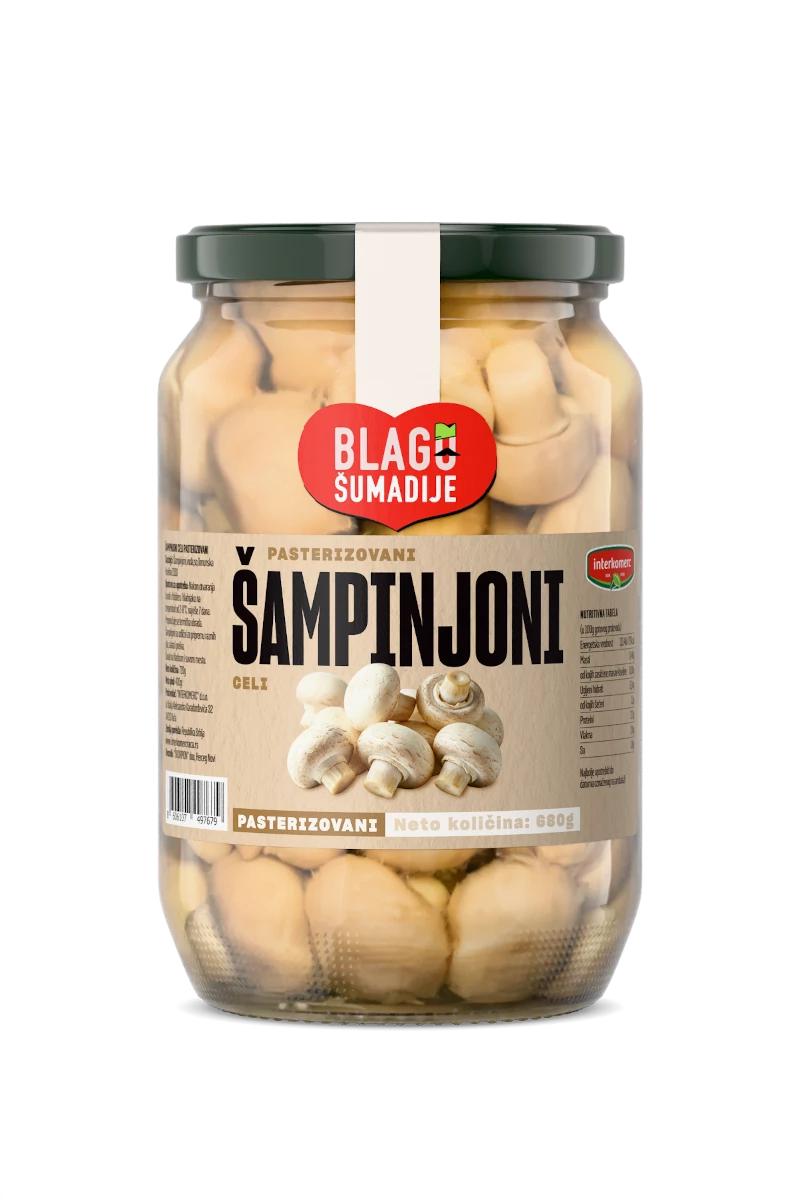Pasterizovani celi šampinjoni, domaći, spremni za upotrebu, 680 g.